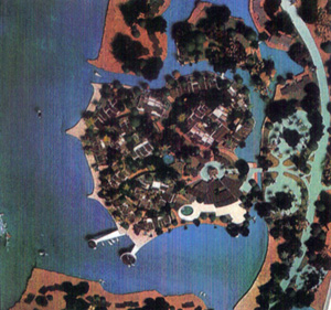 Le terrain se présentait sous forme d’une presqu’île protégée de l’océan par une barre de corail et offrant à l’intérieur de la baie une eau calme, une partie de la côte étant une place publique.